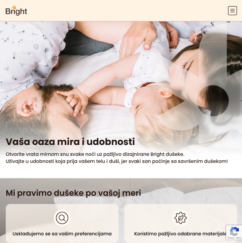 Bright.rs pretvara običnu kupovinu dušeka i krevetnine u poziv na lepše snove – jer snovi se zaista lepše sanjaju kada je dom ispunjen toplinom i udobnošću. Sajt nudi pažljivo odabrane proizvode koji ne samo da obezbeđuju kvalitetan san već stvaraju atmosferu sigurnosti i porodične bliskosti. Svaka stranica odiše idejom da miran san nije luksuz, već osnova za zdravlje, radost i skladan život, pa Bright.rs postaje digitalni vodič ka svetu u kojem se sanjaju najlepši snovi.