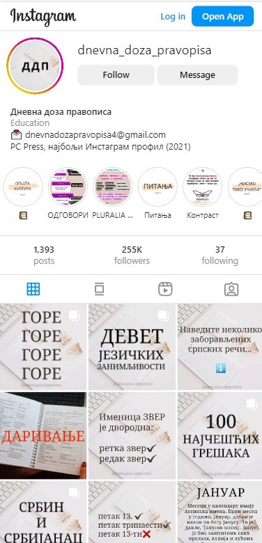 Uvek posebno mesto na izboru Top50 pripada Nagradi publike, koja predlaže i glasa za svog favorita. Zajednica okupljena oko Instagram profila “dnevna-doza-pravopisa” je obezbedila ubedljivu pobedu i time potvrdila da edukativni sadržaj može biti i te kako zanimljiv i poželjan. Konstantni rast pratilaca ovog profila, od 199 hiljada prethodne godine do 255 hiljada u ovom […]